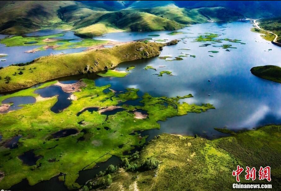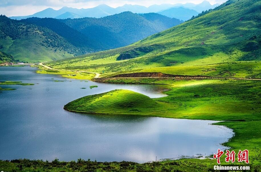 Λιβ?δια μοι?ζουν να πλ?ουν στην λ?μνη Τσουνντ?νγκ Χα?ζ?, τη? Θιβετιαν?? Αυτ?νομη? Κομητε?α? Μουλ? στο Λιανγκσ?ν, τη? επαρχ?α? Σιτσου?ν, 15 Ιουλ?ου 2022, σχηματ?ζοντα? ?να ονειρικ? γραφικ? τοπ?ο. (Φωτογραφ?α/ICphoto)