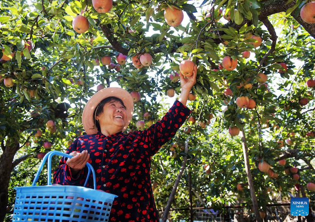 ?να? χωρικ?? συγκομ?ζει μ?λα σε ?ναν οπωρ?να στην κωμ?πολη Γιανγκχ? τη? κομητε?α? Τζιαοτζ?ου, στην επαρχ?α Σαντ?νγκ τη? ανατολικ?? Κ?να?, 8 Οκτωβρ?ου 2022. (Φωτογραφ?α: Wang Zhaomai/Xinhua)
