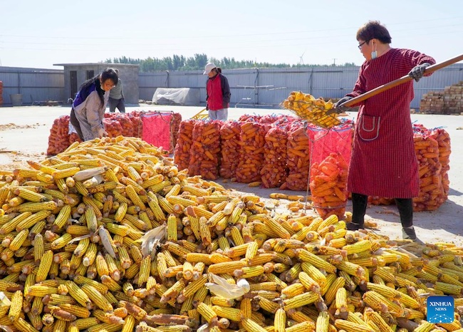 Οι χωρικο? αερ?ζουν το καλαμπ?κι στην κωμ?π?λη Χουανγκντ?εν τη? περιφ?ρεια? Ντινγκτ?ο, στην π?λη Χετζ?, στην επαρχ?α Σαντ?νγκ τη? ανατολικ?? Κ?να?, 10 Οκτωβρ?ου 2022. (Xinhua/Xu Suhui)