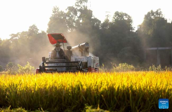?να? χωρικ?? συγκομ?ζει ρ?ζι στο χωρι? Σιντ?νγκ τη? κομητε?α? Τζισ?νγκ, στην επαρχ?α Χουν?ν τη? κεντρικ?? Κ?να?, στι? 10 Οκτωβρ?ου του 2022. (Φωτογραφ?α: Li Ke/Xinhua)