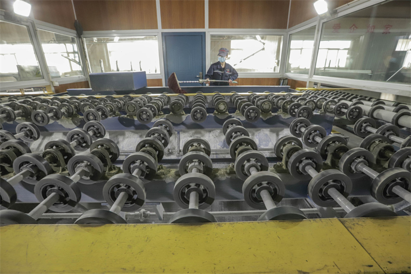 | ?να? εργ?τη? επεξεργ?ζεται ρο?χα σε ?να εργαστ?ριο στην κομητε?α Ανλ?νγκ του Γκου??τζοου στι? 15 Φεβρουαρ?ου. [Φωτογραφ?α/Xinhua] |