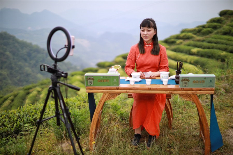 Η Λι Τζιαλ? παρουσι?ζει την τ?χνη του τσαγιο? μ?σω ζωνταν?? ρο?? σε ?ναν κ?πο τσαγιο? στο χωρι? Τσουντζ?νγκ, στην π?λη Μπα?ν?, στην επαρχ?α Γιουτσ?νγκ, στην επαρχ?α Γκουιτζ?ου τη? νοτιοδυτικ?? Κ?να?, 30 Απριλ?ου 2020. (Xinhua/Liu Xu)