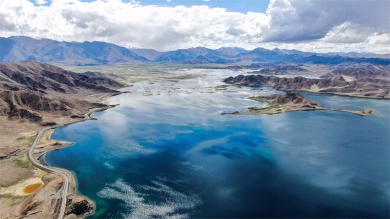 Τα σ?ννεφα αντικατοπτρ?ζονται στην λ?μνη Μπανγκ?νγκ σε αυτ? την εικ?να που ?βγαλε δρ?νο? στι? 3 Αυγο?στου 2019 στο Αλ?, στην αυτ?νομη περιοχ? του Θιβ?τ τη? Νοτιοδυτικ?? Κ?να?. Η λ?μνη ε?ναι μοναδικ? δι?τι η περιεκτικ?τητ? τη? σε αλ?τι αυξ?νεται προοδευτικ? καθ?? το νερ? ρ?ει προ? τα δυτικ?. Π?νω απ? 10 μικρ? νησι? ε?ναι δι?σπαρτα ενισχ?οντα? την ομορφι? τη?, την οπο?α οι επισκ?πτε? μπορο?ν να απολα?σουν με β?ρκε?. [Φωτογραφ?α/Xinhua]