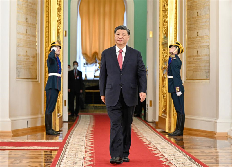 Ανεξ?ρτητα απ? το π?? μπορε? να αλλ?ξει η διεθν?? κατ?σταση, η Κ?να θα παραμε?νει προσηλωμ?νη στην προ?θηση τη? συνολικ?? στρατηγικ?? εταιρικ?? σχ?ση? συντονισμο? Κ?να?-Ρωσ?α? για μια ν?α εποχ?, ε?πε ο Σι, προσθ?τοντα? ?τι αυτ? η κρατικ? επ?σκεψη του στη Ρωσ?α ε?ναι ?να ταξ?δι τη? φιλ?α?, τη? συνεργασ?α? και τη? ειρ?νη?. Η Κ?να ε?ναι ?τοιμη να συνεργαστε? με τη Ρωσ?α για να αξιοποι?σει τα προηγο?μενα επιτε?γματα, να εμπλουτ?σει τη συνολικ? στρατηγικ? εταιρικ? σχ?ση συντονισμο? για μια ν?α εποχ?, να αποφ?ρει περισσ?τερα οφ?λη στου? δ?ο λαο?? και να συμβ?λει περισσ?τερο στην πρ?οδο τη? ανθρωπ?τητα?.