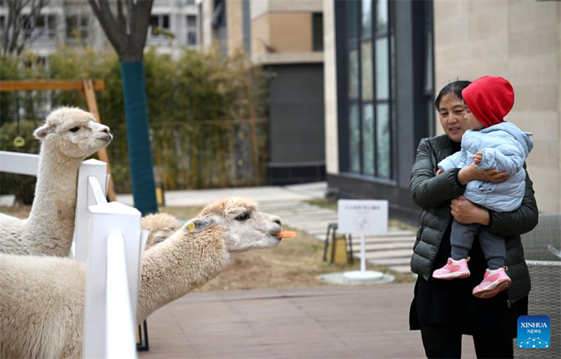 | Οι επισκ?πτε? αλληλεπιδρο?ν με τα αλπακ? στην περιοχ? επ?δειξη? "?ντεν Τσουνσανλ?" στην περιοχ? Ζιτζ?ου, στο Τιεντζ?ν τη? β?ρεια? Κ?να?, 11 Μαρτ?ου 2023. (Φωτογραφ?α / Xinhua) |