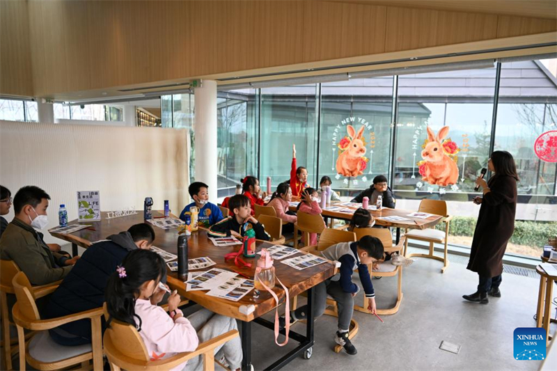 | Τα παιδι? μαθα?νουν για την πρ?σινη αρχιτεκτονικ? στην περιοχ? επ?δειξη? "?ντεν Τσουνσανλ?" στην περιοχ? Ζιτζ?ου, στο Τιεντζ?ν τη? β?ρεια? Κ?να?, 11 Μαρτ?ου 2023. (Φωτογραφ?α / Xinhua) |