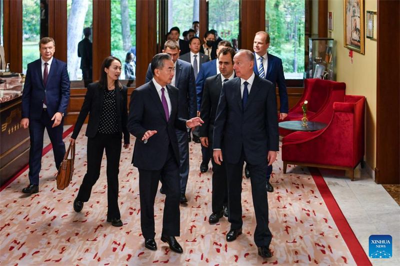| Ο Γου?νγκ Γι, Κιν?ζο? υπουργ?? Εξωτερικ?ν και διευθυντ?? του Γραφε?ου τη? Επιτροπ?? Εξωτερικ?ν Υποθ?σεων τη? Κεντρικ?? Επιτροπ?? του ΚΚΚ, συμπροεδρε?ει στον 18ο γ?ρο διαβουλε?σεων για τη στρατηγικ? ασφ?λεια Κ?να?-Ρωσ?α? με τον Νικολ?ι Πατρο?σεφ, Γραμματ?α του Συμβουλ?ου Ασφαλε?α? τη? Ρωσικ?? Ομοσπονδ?α?, στη Μ?σχα, Ρωσ?α, 19 Σεπτεμβρ?ου 2023. (Φωτογραφ?α / Xinhua) |