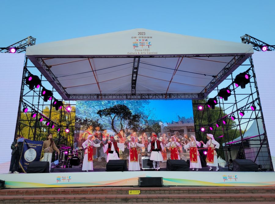 Στιγμ? απ? την παρ?σταση που ?δωσε το ελληνικ? χορευτικ? συγκρ?τημα του πολιτιστικο? συλλ?γου Αλισσα?ων ?Πε?ρο??, για το 3ο Φεστιβ?λ Πολιτισμο? και Τεχν?ν Κ?να?-Χωρ?ν Κεντρικ?? και Ανατολικ?? Ευρ?πη? (ΧΚΑΕ), στο Π?ρκο Τσαογι?νγκ του Πεκ?νου στι? 22 Οκτωβρ?ου? του 2023. (Φωτογραφ?α Ε?α Παπαζ?/CRI Greek)