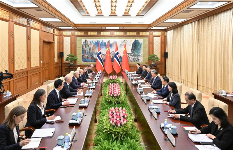 Ο Κιν?ζο? Πρ?εδρο? Σι Τζινπ?νγκ συναντ?θηκε τη Δευτ?ρα με τον Νορβηγ? πρωθυπουργ? Γιο?να? Γκαρ Στ?ρε στο Πεκ?νο, και ε?πε ?τι η Κ?να ε?ναι πρ?θυμη να συνεργαστε? με τη Νορβηγ?α για να προωθ?σει τη συνεχ? αν?πτυξη τη? φιλικ?? συνεργασ?α?.