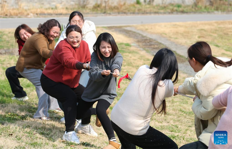 | Γυνα?κε? διαγων?ζονται σε παιχν?δι διελκυστ?νδα? κατ? τη δι?ρκεια εκδ?λωση? για τον εορτασμ? τη? Παγκ?σμια? Ημ?ρα? τη? Γυνα?κα? στην π?λη Τζουρ?νγκ, επαρχ?α Τζιανγκσο?, ανατολικ? Κ?να, στι? 6 Μαρτ?ου 2025. Φωτογραφ?α / Xinhua |