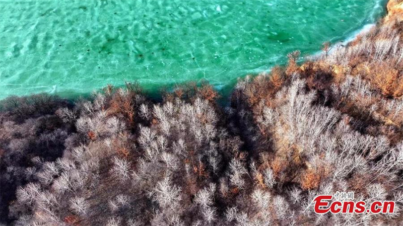 Η δεξαμεν? νερο? Γιουετο?ν που μοι?ζει απ? ψηλ? με νεφρ?τη προσθ?τει χρ?μα στο οροπ?διο Loess καθ?? η θερμοκρασ?α αυξ?νεται στην Γιαν’αν, στην επαρχ?α Σαανσ? τη? βορειοδυτικ?? Κ?να?.