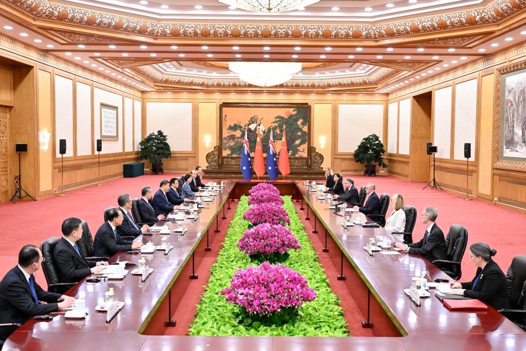 Ο Κιν?ζο? Πρ?εδρο? Σι Τζινπ?νγκ τ?νισε την Τρ?τη μια αλλαγ? στι? σχ?σει? Κ?να?-Αυστραλ?α? τα τελευτα?α χρ?νια, κατ? τη δι?ρκεια συν?ντηση? με τον Αυστραλ? Πρωθυπουργ? ?ντονι Αλμπαν?ζε στο Πεκ?νο.